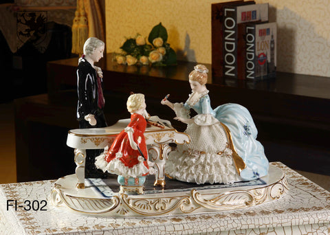 פיגורה פורצלן ענקית משפחה עם פסנתר