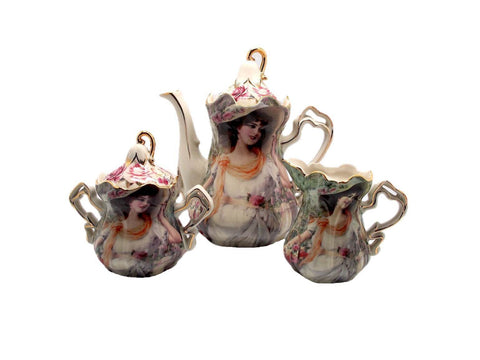 סט פורצלןקומקום חלבון וסוכרבעיצוב אומנים פורצלן יוקרתי